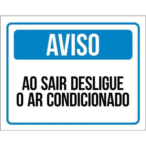 Placa Sinalização - Ao Sair Desligue O Ar Condicionado 36x46 Informações do Produto: Placas decorativas fabricadas com poliestireno de alto impacto PSAI de 2mm e impressão ultravioleta. - Medidas: 36cm x 46cm - Fixação: Todas as placas possuem adesivo dupla face para aplicação em qualquer tipo de superfície lisa. de 12 meses e disponibilidade imediata. Marca: Não Informado