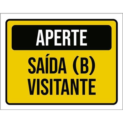 Placa Sinalização - Aperte Saída B Visitante 36x46 Placas de sinalizaço fabricadas com poliestireno de alto impacto PSAI de 2mm e impressão ultravioleta.