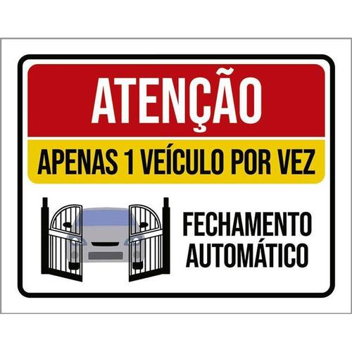 Placa Sinalização Atenção apenas 1 veículo por vez, fechamento automático 36x46 - Informações do Produto: Placas decorativas fabricadas com poliestireno de alto impacto PSAI de 2mm e adesivo vinil automotivo de alta performance. - Medidas: 36cm x 46cm - Fixação: Todas as placas possuem adesivo dupla face para aplicação em qualquer tipo de superfície lisa. de 12 meses e disponibilidade imediata. Marca: Não Informado Ean: 7795123273860