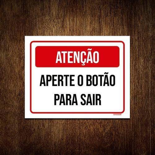 Placa Sinalização - Atenção Aperte Botão Sair Verm 18x23 - Informações do Produto: Placas decorativas fabricadas com poliestireno de alto impacto PSAI de 2mm e impressão ultravioleta. - Medidas: 18cm x 23cm - Fixação: Todas as placas possuem adesivo dupla face para aplicação em qualquer tipo de superfície lisa. Garantia de 12 meses e disponibilidade imediata. Marca: Sinalizo