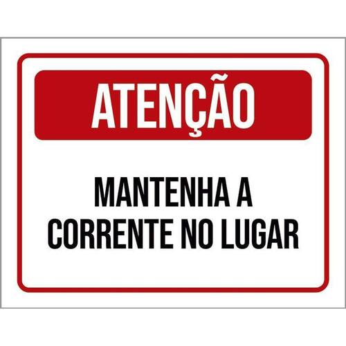 Placa Sinalização - Atenção Mantenha Corrente No Lugar 36x46 - Informações do Produto: Placas decorativas fabricadas com poliestireno de alto impacto PSAI de 2mm e adesivo vinil automotivo de alta performance. - Medidas: 36cm x 46cm - Fixação: Todas as placas possuem adesivo dupla face para aplicação em qualquer tipo de superfície lisa. de 12 meses e disponibilidade imediata. Marca: Não Informado