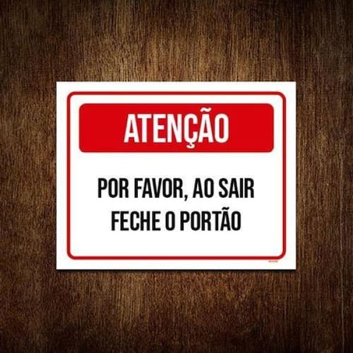 Placa Sinalização Atenção Por Favor Sair Feche Portão 18X23