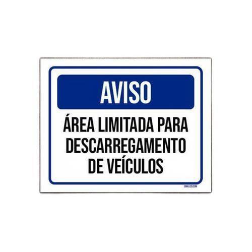 Placa sinalização aviso área limitada descarregamento 36x46 Não precisa furar, não empena e nem perde a cor no sol, pode ser rebitada e não rasga - informações do produto: Placas decorativas fabricadas com poliestireno de alto impacto psai de 2mm e adesivo vinil automotivo de alta performance. - medidas: 36cm x 46cm - fixação: Todas as placas possuem adesivo dupla face para aplicação em qualquer tipo de superfície lisa. de 12 meses e disponibilidade imediata. Marca: Sinalizo Ean: 7896405975578