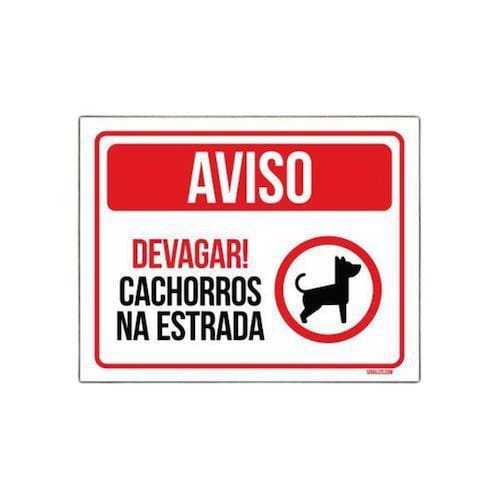 Placa Sinalização Aviso Devagar Cachorros Na Estrada 18X23