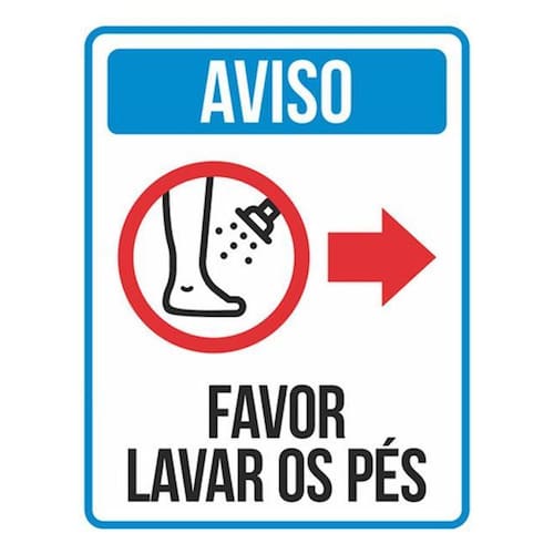 Placa Sinalização Aviso Favor Lavar Pés Seta Direita 36x46 Placas de sinalizaço fabricadas com poliestireno de alto impacto PSAI de 2mm e impressão ultravioleta.
