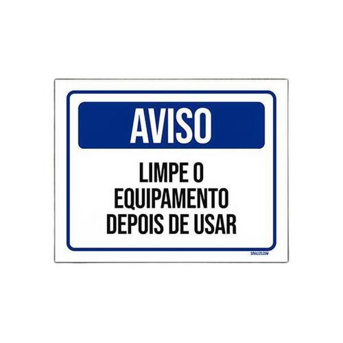 Placa Sinalização Aviso Limpe Equipamento Antes Usar 18X23