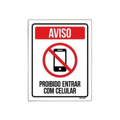 Placa Sinalização - Aviso Proibido Entrar Celular 18X23