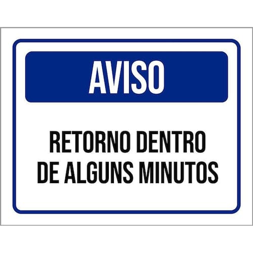 Placa Sinalização - Aviso Retorno Alguns Minutos 36X46