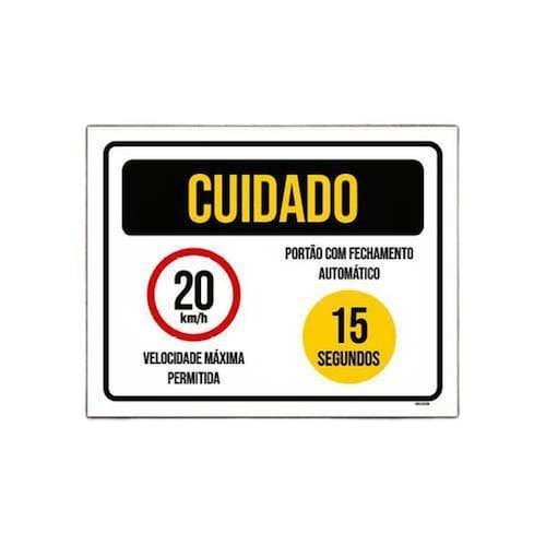 Placa Sinalização - Cuidado 20 Km H 15 Segundos 36x46 - Informações do Produto: Placas decorativas fabricadas com poliestireno de alto impacto PSAI de 2mm e adesivo vinil automotivo de alta performance. - Medidas: 36cm x 46cm - Fixação: Todas as placas possuem adesivo dupla face para aplicação em qualquer tipo de superfície lisa. de 12 meses e disponibilidade imediata. Marca: Não Informado