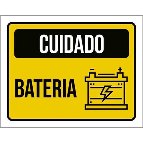 Placa Sinalização - Cuidado Bateria Amarela Ícone 36x46 Placas de sinalizaço fabricadas com poliestireno de alto impacto PSAI de 2mm e impressão ultravioleta.