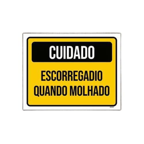 Placa Sinalização Cuidado Escorregadio Quando Molhado 18x23 - Informações do Produto: Placas decorativas fabricadas com poliestireno de alto impacto PSAI de 2mm e adesivo vinil automotivo de alta performance. - Medidas: 18cm x 23cm - Fixação: Todas as placas possuem adesivo dupla face para aplicação em qualquer tipo de superfície lisa. de 12 meses e disponibilidade imediata. Marca: Não Informado