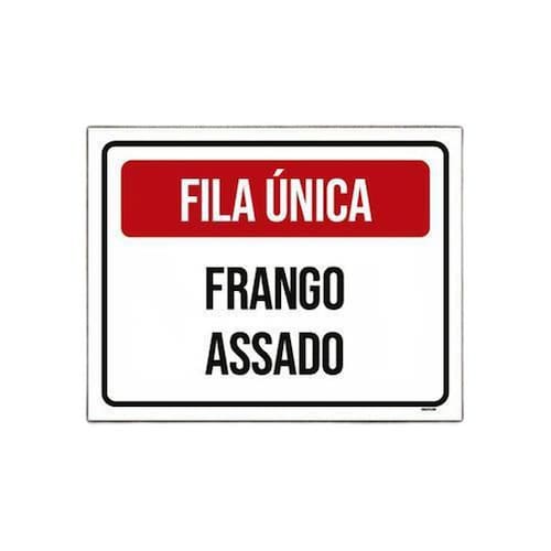 Placa Sinalização - Fila Única Frango Assado 27x35 - Informações do Produto: Placas decorativas fabricadas com poliestireno de alto impacto PSAI de 2mm e adesivo vinil automotivo de alta performance. - Medidas: 27cm x 35cm - Fixação: Todas as placas possuem adesivo dupla face para aplicação em qualquer tipo de superfície lisa. de 12 meses e disponibilidade imediata. Marca: Sinalizo