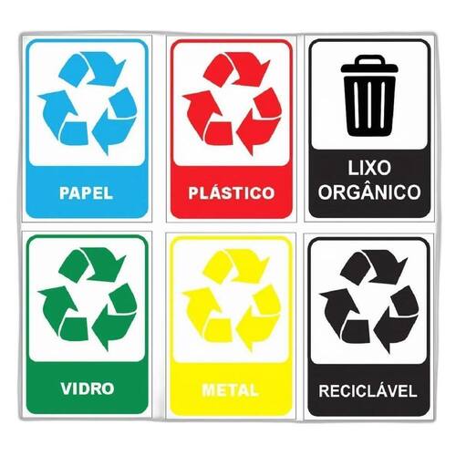 1 - placa de lixo Plástico 1 - placa de lixo Metal 1 - placa de lixo Vidro 1 - placa de lixo Metal 1 - placa de lixo Reciclável 1 - placa de lixo Orgânico
