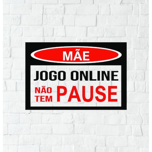 Placa Sinalização Mdf Mãe Jogo Olnine Não Tem Pause 20X28Cm