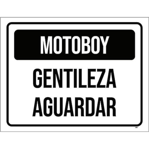 Placa Sinalização - Motoboy Gentileza Aguardar 27x35 - Informações do Produto: Placas decorativas fabricadas com poliestireno de alto impacto PSAI de 2mm e adesivo vinil automotivo de alta performance. - Medidas: 27cm x 35cm - Fixação: Todas as placas possuem adesivo dupla face para aplicação em qualquer tipo de superfície lisa. de 12 meses e disponibilidade imediata. Marca: Não Informado Ean: 7795317848126