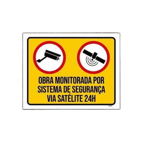 Placa Sinalização Obra Monitorada Sistema Segurança 18X23