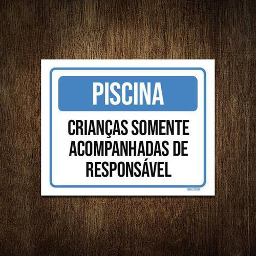 Placa Sinalização - Piscina Crianças Acompanhadas 27X35