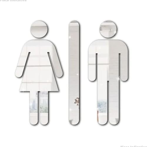--------------------------------------atenção------------------------------------------- Espelho decorativo em mdf sinalização de banheiro prata Características: - espessura: 3,0 mm Tamanho: - homem: 17 x 6,5 cm - mulher: 17 x 7,7 cm Acompanha: 01 x kit placa espelhada em mdf Onde aplicar: - casa: parede de quarto, sala, varanda, etc... - móveis em geral - lojas: - escritório - escola - creche Cuidados: - nossos espelhos decorativos podem ser aplicados em qualquer superfície lisa, ideais para aplicação em paredes planas, vidros, azulejos e onde mais sua imaginação mandar. - utilize fitas dupla face para fixação dos espelhos. Kit já vai com as fitas. - para limpeza utilizar flanela macia e pano umido. Marca: Não Informado Ean: 7892090279564