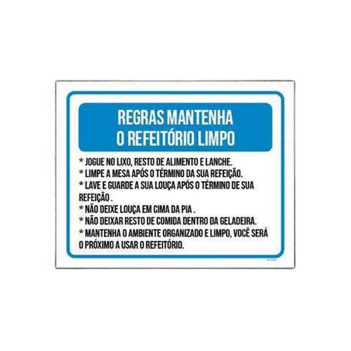 Placa Sinalização - Regras Mantenha Refeitório Limpo 36X46