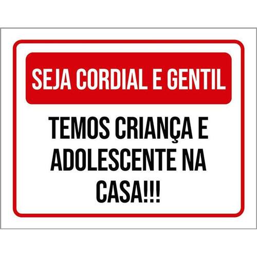 Placa Sinalização - Seja Cordial Gentil Temos Criança 36x46 - Informações do Produto: Placas decorativas fabricadas com poliestireno de alto impacto PSAI de 2mm e adesivo vinil automotivo de alta performance. - Medidas: 36cm x 46cm - Fixação: Todas as placas possuem adesivo dupla face para aplicação em qualquer tipo de superfície lisa. de 12 meses e disponibilidade imediata. Marca: Não Informado Ean: 7794882622742