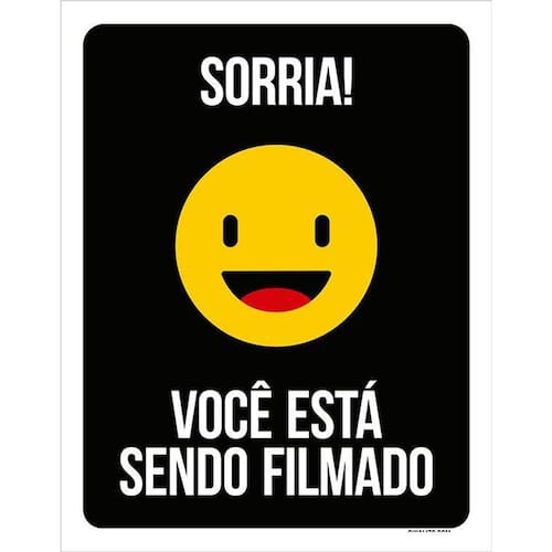 Placa Sinalização Sorria Você Está Sendo Filmado 36x46 - Informações do Produto: Placas decorativas fabricadas com poliestireno de alto impacto PSAI de 2mm e adesivo vinil automotivo de alta performance. - Medidas: 36cm x 46cm - Fixação: Todas as placas possuem adesivo dupla face para aplicação em qualquer tipo de superfície lisa. de 12 meses e disponibilidade imediata.