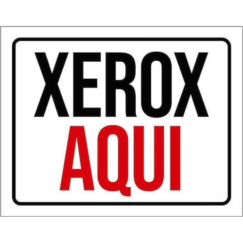 Placa sinalização - xerox aqui 18x23 Não precisa furar, não empena e nem perde a cor no sol, pode ser rebitada e não rasga - informações do produto: Placas decorativas fabricadas com poliestireno de alto impacto psai de 2mm e adesivo vinil automotivo de alta performance. - medidas: 18cm x 23cm - fixação: Todas as placas possuem adesivo dupla face para aplicação em qualquer tipo de superfície lisa. de 12 meses e disponibilidade imediata. Marca: Não Informado Ean: 7793660651158