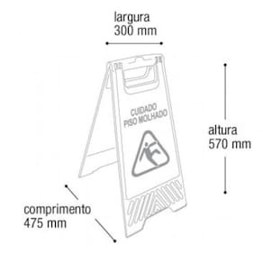 A placa é confeccionada em plástico de alta durabilidade, o que garante uma longa vida útil e resistência contra o desgaste. Suas dimensões são 475mm de comprimento por 300mm de largura e 570mm de altura, o tamanho perfeito para ser facilmente notada e ao mesmo tempo fácil de armazenar quando não estiver em uso.