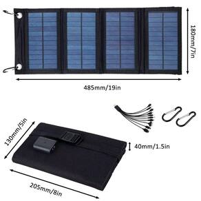2. dobrável e leve Nosso carregador de energia solar USB é dobrável e leve, fácil de transportar. É ultrafino, fácil de armazenar e instalar. O tamanho dobrável é 20513040mm.