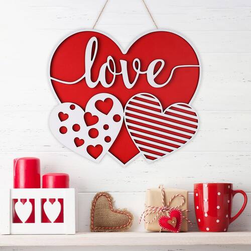Decoração de porta do dia dos namorados, placa de madeira em forma de coração 3D para decoração de dia dos namorados ou decoração de parede, decoração de dia dos namorados - O que você receberá: o pacote vem com 1 placa de porta de coração de madeira e 1 corda para pendurar. Tamanho da placa de porta do coração: 29 x 26 cm. A espessura das placas de camada única é de 0,5 pol e a espessura das seções projetadas em 3D é de 0,4 pol - Material premium: a placa de porta dos namorados é feita de material de madeira de alta qualidade, resistente e durável, cheia de boa textura, tem cor vermelha vibrante, não é fácil de quebrar ou desbotar, pode ser usada em várias estações festivas - Design exclusivo: nossa placa de madeira do Dia dos Namorados é projetada com a forma de 3 corações, muito romântica e delicada. O "amor" no meio e 2 pequenos corações são esculpidos em 3D. Com 1 corda para pendurar que é fácil de usar - Ampla aplicação: ideal para decorar parede, jardim, quintal, janela, porta da frente, mesa, lareira, etc., para receber seu convidado e adicionar uma atmosfera festiva feliz. Ótimo para quarto, cozinha, sala de estar, casa de fazenda, cafeterias e escritório, para melhorar a atmosfera do Dia dos Namorados - Ótima opção de presente: a placa de parede do Dia dos Namorados é requintadamente projetada e de bom gosto. É um excelente presente de Dia dos Namorados para alguém que você ama, presente ideal para seu namorado, namorada, esposa, marido e assim por diante, surpreenda-o no Dia dos Namorados