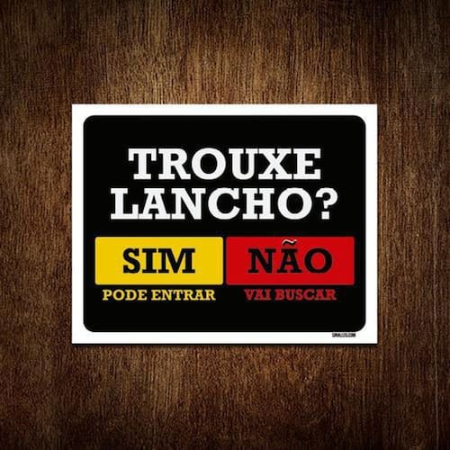 Placa Trouxe Lancho Sim Pode Entrar Não Vai Buscar 36x46 - Informações do Produto: Placas decorativas fabricadas com poliestireno de alto impacto PSAI de 2mm e adesivo vinil automotivo de alta performance. - Medidas: 36cm x 46cm - Fixação: Todas as placas possuem adesivo dupla face para aplicação em qualquer tipo de superfície lisa. de 12 meses e disponibilidade imediata.
