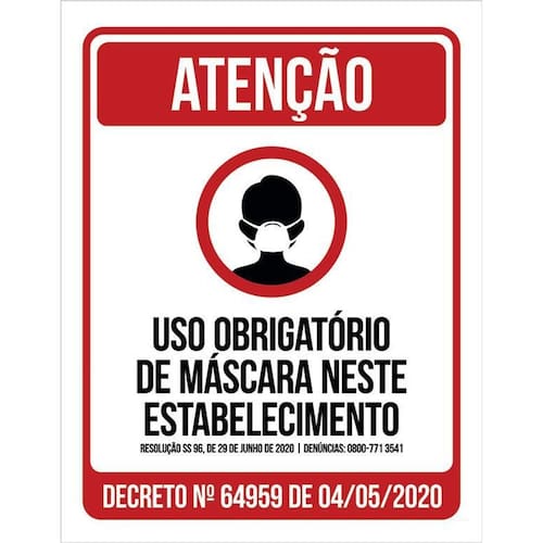Placa Uso Obrigatório Máscara Estabelecimento Comércio 36x46 - Informações do Produto: Placas decorativas fabricadas com poliestireno de alto impacto PSAI de 2mm e adesivo vinil automotivo de alta performance. - Medidas: 36cm x 46cm - Fixação: Todas as placas possuem adesivo dupla face para aplicação em qualquer tipo de superfície lisa. de 12 meses e disponibilidade imediata. Marca: Não Informado