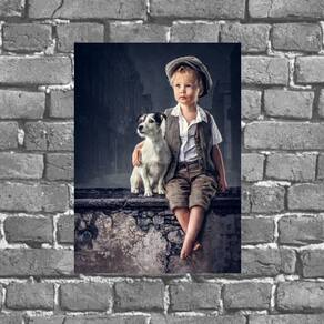 Placa Vintage Menino Com Cachorro 18x27cm