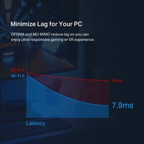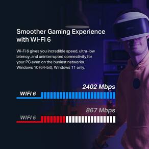 - A placa de rede está equipada com tecnologia OFDMA e MU-MIMO para reduzir o atraso para que você possa desfrutar de jogos em tempo real ultra-responsivos ou uma experiência imersiva de realidade virtual até mesmo nas redes mais movimentadas