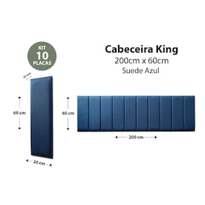 Placas Cabeceira Modulada Adesiva King Estofada 200cm x 60cm Kit 10 Placas - Suede AzulAs cabeceiras estofadas para cama box Flamingo Design trazem conforto e sofisticação para o seu quarto, tornando o ambiente mais aconchegante! As placas moduladas são uma ótima opção de decoração para você que quer praticidade na hora da instalação. Não é necessário furar a parede, as placas possuem fitas adesivas para fixação e você mesmo pode instalar facilmente!Nossos móveis são fabricados com materiais de alta qualidade e durabilidade, de fácil instalação e limpeza.A Flamingo Design te dá uma garantia de 3 meses contra qualquer defeito de fabricação!Confira abaixo mais detalhes sobre o produto:- Marca: Flamingo Design.- Modelo: Placa Modulada Adesiva.- Tamanho: King.- Qtd Peças: 10.- Comprimento Total: 200cm.- Altura: 60cm.- Largura (espessura): 26mm.- Material: MDF e espuma.- Fixação: Na parede com fita adesiva que já acompanha o produto.- Garantia: 3 meses.- Tecido: Suede.- Cor: Azul.Quantas placas você precisa para montar sua cabeceira?- Solteiro: 5 placas (100cm de largura).- Casal: 7 placas (140cm de largura).- Queen: 8 placas (160cm de largura).- King: 10 placas (200cm de largura).Como é feita a instalação?- Aplicar sobre a parede limpa (utilize um pano seco para remover qualquer poeira).- Faça as marcações na parede para auxiliar na instalação usando um nível ou fita métrica.- Observe as tramas do tecido para que todas as placas fiquem na mesma direção (veja a marcação atrás da cabeceira indicando o sentido).- Retire a proteção das fitas adesivas da placa.- Cole diretamente na parede uma placa de cada vez, pressionando por alguns segundos para garantir a colagem.Cuidados adicionais:- Instale as placas somente em paredes lisas. Não garantimos uma boa fixação em paredes com textura ou grafiato.- Pode ser colado em parede lisa, MDF, drywall, papel de parede liso (sem textura).- Para remover as placas utilize uma espátula e puxe com cuidado para descolar o adesivo (se desejar utilize um secador de cabelo para amolecer o adesivo).- As fotos são reais do produto. Podem ocorrer pequenas diferenças de cor devido ao tratamento de imagem e calibragem de cores do seu monitor ou celular. Marca: Flamingo Design