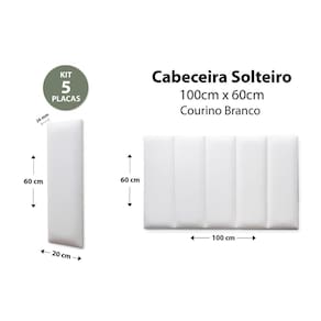 Placas Cabeceira Modulada Adesiva Solteiro Estofada 100cm x 60cm Kit 5 Placas - Courino BrancoAs cabeceiras estofadas para cama box Flamingo Design trazem conforto e sofisticação para o seu quarto, tornando o ambiente mais aconchegante! As placas moduladas são uma ótima opção de decoração para você que quer praticidade na hora da instalação. Não é necessário furar a parede, as placas possuem fitas adesivas para fixação e você mesmo pode instalar facilmente!Nossos móveis são fabricados com materiais de alta qualidade e durabilidade, de fácil instalação e limpeza.A Flamingo Design te dá uma garantia de 3 meses contra qualquer defeito de fabricação!Confira abaixo mais detalhes sobre o produto:- Marca: Flamingo Design.- Modelo: Placa Modulada Adesiva.- Tamanho: Solteiro.- Qtd Peças: 5.- Comprimento Total: 100cm.- Altura: 60cm.- Largura (espessura): 26mm.- Material: MDF e espuma.- Fixação: Na parede com fita adesiva que já acompanha o produto.- Garantia: 3 meses.- Tecido: Courino.- Cor: Branco.Quantas placas você precisa para montar sua cabeceira?- Solteiro: 5 placas (100cm de largura).- Casal: 7 placas (140cm de largura).- Queen: 8 placas (160cm de largura).- King: 10 placas (200cm de largura).Como é feita a instalação?- Aplicar sobre a parede limpa (utilize um pano seco para remover qualquer poeira).- Faça as marcações na parede para auxiliar na instalação usando um nível ou fita métrica.- Observe as tramas do tecido para que todas as placas fiquem na mesma direção (veja a marcação atrás da cabeceira indicando o sentido).- Retire a proteção das fitas adesivas da placa.- Cole diretamente na parede uma placa de cada vez, pressionando por alguns segundos para garantir a colagem.Cuidados adicionais:- Instale as placas somente em paredes lisas. Não garantimos uma boa fixação em paredes com textura ou grafiato.- Pode ser colado em parede lisa, MDF, drywall, papel de parede liso (sem textura).- Para remover as placas utilize uma espátula e puxe com cuidado para descolar o adesivo (se desejar utilize um secador de cabelo para amolecer o adesivo).- As fotos são reais do produto. Podem ocorrer pequenas diferenças de cor devido ao tratamento de imagem e calibragem de cores do seu monitor ou celular. Marca: Flamingo Design