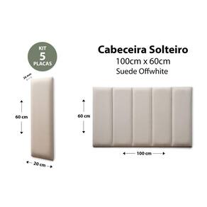 Placas Cabeceira Modulada Adesiva Solteiro Estofada 100cm x 60cm Kit 5 Placas - Suede Off WhiteAs cabeceiras estofadas para cama box Flamingo Design trazem conforto e sofisticação para o seu quarto, tornando o ambiente mais aconchegante! As placas moduladas são uma ótima opção de decoração para você que quer praticidade na hora da instalação. Não é necessário furar a parede, as placas possuem fitas adesivas para fixação e você mesmo pode instalar facilmente!Nossos móveis são fabricados com materiais de alta qualidade e durabilidade, de fácil instalação e limpeza.A Flamingo Design te dá uma garantia de 3 meses contra qualquer defeito de fabricação!Confira abaixo mais detalhes sobre o produto:- Marca: Flamingo Design.- Modelo: Placa Modulada Adesiva.- Tamanho: Solteiro.- Qtd Peças: 5.- Comprimento Total: 100cm.- Altura: 60cm.- Largura (espessura): 26mm.- Material: MDF e espuma.- Fixação: Na parede com fita adesiva que já acompanha o produto.- Garantia: 3 meses.- Tecido: Suede.- Cor: Off White.Quantas placas você precisa para montar sua cabeceira?- Solteiro: 5 placas (100cm de largura).- Casal: 7 placas (140cm de largura).- Queen: 8 placas (160cm de largura).- King: 10 placas (200cm de largura).Como é feita a instalação?- Aplicar sobre a parede limpa (utilize um pano seco para remover qualquer poeira).- Faça as marcações na parede para auxiliar na instalação usando um nível ou fita métrica.- Observe as tramas do tecido para que todas as placas fiquem na mesma direção (veja a marcação atrás da cabeceira indicando o sentido).- Retire a proteção das fitas adesivas da placa.- Cole diretamente na parede uma placa de cada vez, pressionando por alguns segundos para garantir a colagem.Cuidados adicionais:- Instale as placas somente em paredes lisas. Não garantimos uma boa fixação em paredes com textura ou grafiato.- Pode ser colado em parede lisa, MDF, drywall, papel de parede liso (sem textura).- Para remover as placas utilize uma espátula e puxe com cuidado para descolar o adesivo (se desejar utilize um secador de cabelo para amolecer o adesivo).- As fotos são reais do produto. Podem ocorrer pequenas diferenças de cor devido ao tratamento de imagem e calibragem de cores do seu monitor ou celular. Marca: Flamingo Design