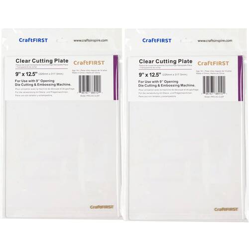 Placas de corte transparentes CraftFirst 9 x 12,5, acessórios para máquinas de corte sob pressão, pacote com 2 — DURÁVEIS — Feitos de plástico de policarbonato de alta qualidade, transparente e durável. - CORTE EM MOLDE - Protege suas matrizes e materiais ao passar pela máquina de corte e vinco. - TRANSPARENTE — O plástico de policarbonato transparente permite a fácil colocação de materiais para um corte preciso. - Dimensões: 9" x 12,5” (226 mm x 317,5 mm). - O pacote contém duas placas de corte transparentes.