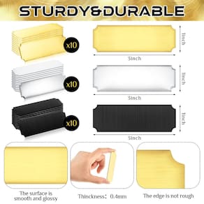 Características: Faça você mesmo como desejar: A placa de identificação em branco permite que você crie seu próprio crachá com sua imaginação e criatividade para decorar sua casa e assim por diante, deixando uma memória inesquecível para você. Presente significativo: A placa de identificação em branco pode ser vista como presentes significativos para você enviar em dias especiais. Você pode personalizar a placa em branco para o seu cão para ajudá-lo a distinguir seu animal de estimação e criar uma atmosfera acolhedora entre você e seu animal de estimação. Especificações: Material principal: aço inoxidável escovado Cor: como mostrado na imagem. Tamanho da placa de nome: cerca de 7,62 x 2,54 cm Tamanho da espessura: cerca de 0,1 cm A embalagem inclui: 30 placas de nome. Observações: Medição manual, permita pequenos erros no tamanho. A cor pode existir uma pequena diferença devido a diferentes telas. - O que você receberá: você receberá 30 peças de etiquetas de nome personalizadas, que podem atender às suas necessidades diárias, elas não são adequadas para gravação mecânica, apenas para gravação a laser; Preste atenção ao modelo e potência da máquina; muita energia danificará a etiqueta, pouca energia não será capaz de gravar as palavras; você precisa prestar atenção se sua máquina é adequada para gravação a laser de metais comuns; alguns máquinas podem não ser capaz de gravar todos os tipos de metais - Tamanho e design de suporte adesivo: a placa de nome tem cerca de 2,5 cm x 7,6 cm de tamanho e 0,1 cm de espessura, que é mais forte e pode ser esculpida mais profundamente para que você possa usá-la por um longo tempo; e essas placas de nome são equipadas com suporte adesivo, trazendo conveniência para você - Material durável e resistente: estas placas de identificação personalizadas são feitas de aço inoxidável escovado, duráveis e resistentes, não podem ser facilmente quebradas ou deformadas, e a superfície não desbota facilmente em termos de revestimento - Fácil de limpar: a placa de gravação é fácil de limpar, você só precisa lavar as placas de identificação com água ou pano, as placas de identificação estarão limpas e arrumadas, adequadas para ambientes externos e internos, nossas placas de nome são antiferrugem e merecem seu investimento - Ampla aplicação: a placa de nome pode ser montada em molduras, obras de arte, placas, presentes de casamento, memoriais, troféus, prêmios e assim por diante; e sublimação, estampagem, dobra e outros métodos de gravação são adequados para você gravar