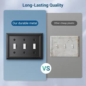Tampa de placa de interruptor preto - ?Design elegante e simples?O acabamento preto discreto combina com a textura na borda, dando à sua casa um visual moderno e agradável; tornando os receptáculos ou interruptores de luz mais decorativos - ?Estrutura de metal durável?Feito de metal espesso e resistente, qualidade resistente para condições adversas; nunca é fácil de quebrar, a tampa de saída manterá seu acabamento por anos - Fácil instalação: os parafusos correspondentes já estão incluídos, instale a placa de parede de metal em minutos, ideal para atualizar ou remodelar em qualquer lugar da sua casa - ?Ampla aplicação?As placas de parede decorativas de metal combinam em vários formatos, podem ser amplamente utilizadas em reguladores, interruptores, receptáculos de saída, tomadas GFCI etc. - Detalhes do produto: placas de parede embaladas para cobrir tomadas independentes, com parafusos de montagem incluídos