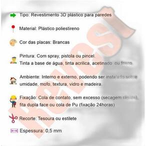 28 Placas Revestimento 3D Decorativo 50X50Cm Muros Piramidal As Placas Revestimento 3D Decorativo são perfeitas para quem busca uma forma prática e rápida de transformar a decoração de ambientes internos e externos. Com o modelo Piramidal, você terá um visual moderno e sofisticado, além de diversos benefícios. Feitas em poliestireno PSAI plástico, as placas possuem uma espessura de 1 mm, garantindo durabilidade e resistência. Com tamanho de 50x50cm, exceto os modelos piramidal e prisma que possuem 48x48cm, elas se adaptam facilmente às paredes, proporcionando um efeito tridimensional único. A instalação das placas é extremamente simples, dispensando a contratação de um . Você mesmo pode realizar o processo, utilizando fita dupla face ou cola de contato. Além disso, o corte das placas é a laser, garantindo um acabamento perfeito. Uma das principais vantagens das Placas Revestimento 3D Decorativo é sua resistência. O relevo não amassa e não afunda, proporcionando uma aparência impecável por muito mais tempo. Além disso, elas são laváveis, permitindo uma limpeza fácil e prática. Outro ponto positivo é sua versatilidade. As placas podem ser instaladas em ambientes internos e externos, inclusive em paredes com umidade, mofo, textura, madeira e azulejo. Elas também podem ser pintadas, utilizando tintas a base de água, acrílica, acetinado ou fosco. Com uma durabilidade de 10 anos, as Placas Revestimento 3D Decorativo são um investimento de longo prazo. Você não precisará se preocupar com a manutenção ou repintura, pois elas mantêm sua aparência por muito mais tempo. Compre as Placas Revestimento 3D Decorativo e transforme sua decoração de forma prática e moderna. Aproveite todos os benefícios que elas oferecem e deixe seu ambiente ainda mais sofisticado. Não perca tempo e adquira agora mesmo!
