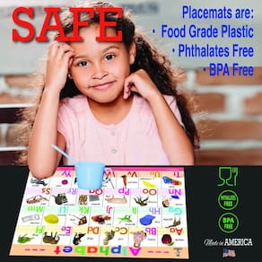 Apresentando o colorido e brilhante tapete americano educacional da Brainymats, que ajuda seu filho a aprender em qualquer idade. Que melhor maneira de ajudar seu filho a aprender tabuada, presidentes dos EUA, tabela periódica, frações, caligrafia cursiva, estados e capitais, países do mundo do que combiná-los com suas refeições favoritas do dia! Agora seu filho pode aprender, comer e se divertir ao mesmo tempo! Seus filhos dominarão os estados e capitais dos EUA, presidentes dos Estados Unidos, países do mundo, tabela periódica de elementos. Nosso tapete americano para prática de multiplicação dará a seu filho uma ajuda extra para compreender esses importantes fatos matemáticos. Tapetes americanos de alimentação educativosOs Brainymats têm uma ampla variedade de jogos americanos adesivos descartáveis coloridos e educacionais que usam fotografia real quando possível para dar vida ao aprendizado. Veja seu filho se divertir enquanto come, enquanto aprende sobre frações, presidentes, caligrafia e muito mais, tornando o aprendizado divertido para seu filho! Um tapete americano Breeze To Clean UpEach é de dupla face com uma superfície fácil de limpar feita de polipropileno, portanto, mesmo com as crianças mais bagunçadas, você poderá limpar seu tapete americano educacional como novo em pouco tempo. Tudo o que você precisa é de uma esponja quente com sabão, basta limpar e secar e ela estará pronta para reutilização.Educação interativaOs jogos americanos de aprendizagem Brainymats também podem ser escritos com marcadores de feltro não permanentes, para que seu filho possa se divertir e escrever sobre seu tema favorito, o tapete americano. Além disso, quando eles terminarem de desenhar por toda parte, você poderá limpá-lo, pronto para ser preenchido na próxima vez. Desenvolvendo vínculos Não há nada mais especial do que se relacionar com seu filho por meio de um livro, história ou aprendendo algo novo. É por isso que esses jogos americanos infantis da Brainymats promoverão a conversa e o aprendizado durante a hora do jantar com sua família. Materiais seguros s
