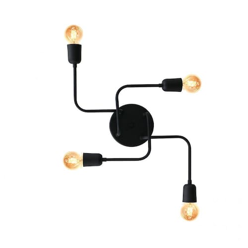 Plafon Aranha Charlô 4XE27 4 Braços Material: Alumínio Lâmpada: 4 Soquete: E27 Base: Alumínio Cores: Preto Medidas : 51 x 43 x 43 cm A x L x P Lâmpadas não inclusas Limpeza: Pano levemente umedecido com água, depois um pano seco. Cuidados: Não utilizar produtos químicos ou abrasivos na limpeza.