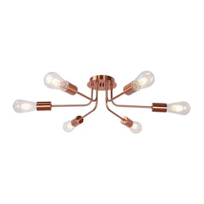 Lustre Luminária Sputnik Aranha 6 Braços Rose Sala Cozinha
