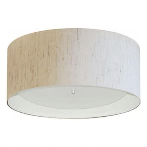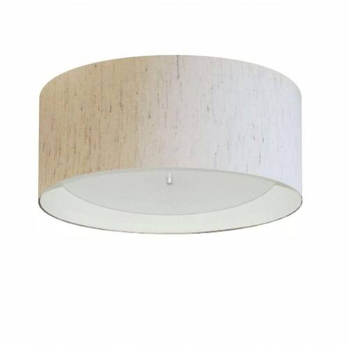 Plafon Cilíndrico Md-3161 Cúpula Em Duplo Tecido 50x25cm Linho Bege / Branco - Bivolt