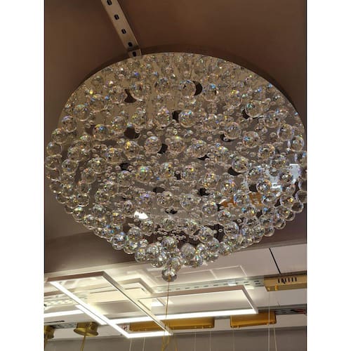 Cód: 7622-800 Plafon de Cristais Bolinha 80cm 20GU10 Soquete: 20*GU10 (Lâmpadas não inclusas) Material: Metal e Cristais Cor: Cromado e Transparente Dimensões: 80cm