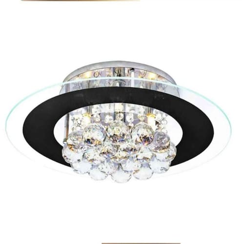 Informação adicional Cor: Preto Dimensões do produto: 40cm de diâmetro 13cm Tipo de Embalagem: Individual Tipo de Soquete: G9 Quantidade de Lâmpadas Necessárias: 4 Lâmpadas Apropriadas: Led Potência Máxima por Lâmpada: 40W Acompanha Lâmpada: Não Possui LED Integrado: Não Material: Cristal, Vidro e Aço Necessita Montagem: Sim Uso: Teto Tensão: Bivolt : 90 dias Marca: Não Informado