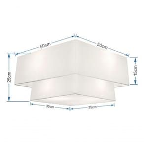 Plafon de Teto Md-3022 de Sobrepor Quadrado com Cúpula em Tecido e Tampa Inferior Branco Vivare Brasil Iluminação