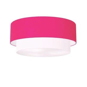 Plafon Duplo Cilíndrico Vivare Md-3064 Cúpula Tecido 70x60cm - Bivolt Rosa-pink-branco 127/220v