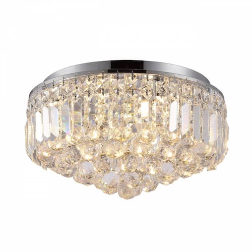 Especificações Técnicas: - Base: G9 - Cor: Cromado transparente - estrutura em aço com banho cromo - potência máxima: 5x40w - tensão: 127V/220V Bivolt - altura do lustre: 24cm - diâmetro: 40cm - lâmpada não inclusa Marca: Bella Iluminacao