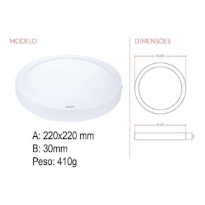 Painel Plafon Sobrepor Redondo 18w 22 x 22 cm